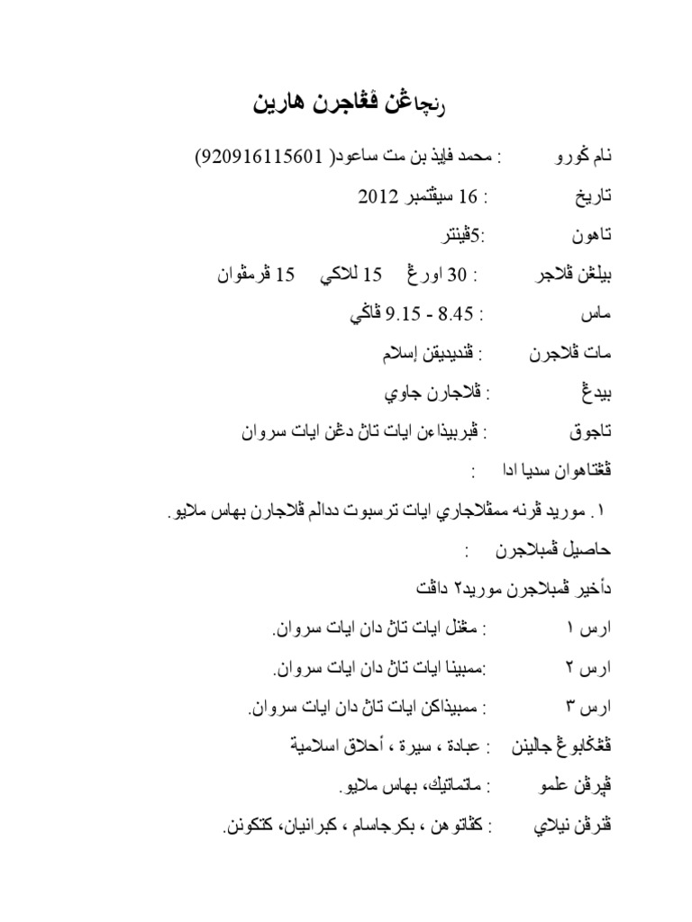 Jawi Tahun 6 Khat Riq Ah Worksheet